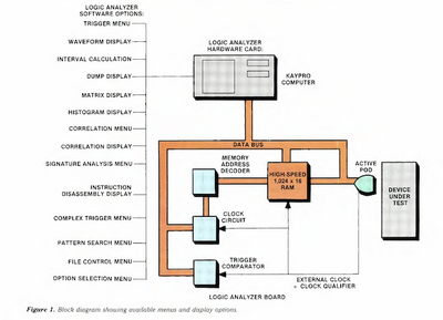 The analyzer comes with all of the standard Kaypro software: operating system, word processor, spreadsheet, database manager and modem controller. Software manuals also are provided. Special proprietary programs are supplied to execute the analysis functions. This software is the heart of effective troubleshooting. (See Figure 1.)
